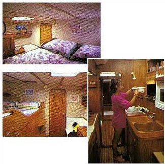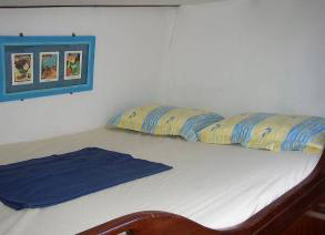 | Nome Bonaire Cantiere/Modello Jeantot Marine/Privilege 47 Misure Lunghezza m. 14,5 Larghezza m. 8,05 Pescaggio m. 1,10 Dislocamento ton. 12 Interni 5 cabine doppie 5 bagni 5 docce + 1 esterna 12 posti-letto Servizi 1000 litri di acqua 240 litri di carburante Cabina Marinaio Cala vele Batterie 660 AMP. Voltaggi 12 – 220 V. Generatore | Attrezzature veliche Randa Genoa Spinnaker Motorizzazione 40 hp x 2 Volvo Penta Velocità: 8 nodi in crociera Consumo: 8 litri/ora (gasolio) Serbatoi: 2 x 120 litri Comodità Acqua calda Riscaldamento Tendalino 30 mq Windsurf 3,3 mt. – 4mq Canoa Tender 3,5 mt 15cv Cucina 4 fuochi + forno 2 frigo Strumentazioni GPS, VHF, Radar Pilota automatico Autohelm 6000 Salpaancore elettrico telec. |
